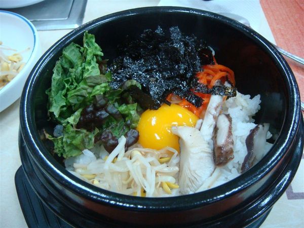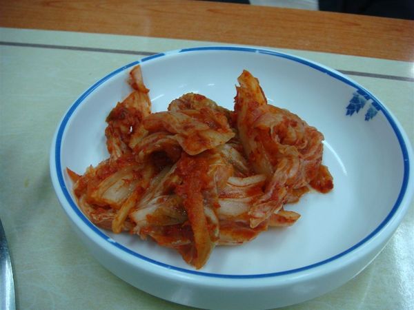小菜(一)韓式泡菜,口感很好吃起來脆脆的,味道還不錯,看起來很紅,感覺會有點辣,實則不然,依美人魚的標準可能只有放辣,但連小辣的程度都不及