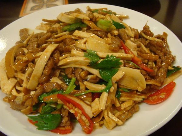 干絲牛肉-這也是二人套餐中的一品,用牛肉絲裹上薄粉過油後,再和豆干絲一同去快炒,甜中帶辣的味道十分的適合包在斤餅中吃,拿來配白飯應該也不錯,牛肉絲和豆干絲都很軟嫩,口感十分滑溜順口