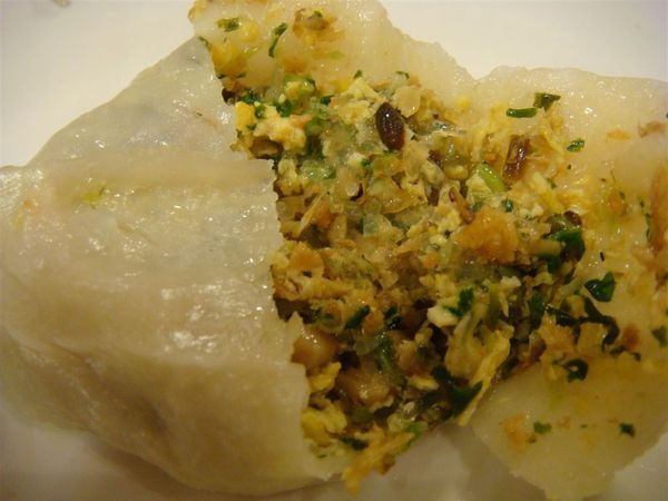 花素蒸餃的斷面秀-看起內餡十分的多,是能夠吃飽的一道料理