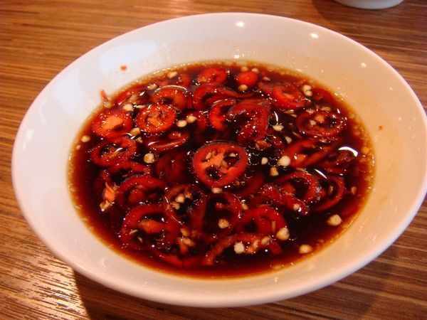 灼豬肚粉腸-將豬肚及豬腸直接用水白灼,所以單吃是沒有什麼味道的,但豬肚及腸子都處理的很好,煮的很軟,不用費太多的力氣就可以嚼爛,沒有什麼腥味,表示清潔的很乾淨,沾上店家提供的特調辣椒醬油,簡單的味道更能顯出食材的美味