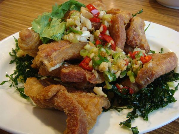 煎芋頭糕-一上桌時,濃濃的芋頭香充斥著整個空間,煎的微焦的外表,和綿密滑嫩的內部,十分的美味,也可以吃到切成塊狀的芋丁,口感及味道都很棒,因為北極熊和美人魚都愛吃芋頭製品,結果北極熊不知不覺中就多吃了一塊,害美人魚少吃了一塊,真是抱歉