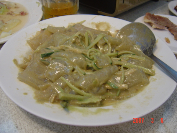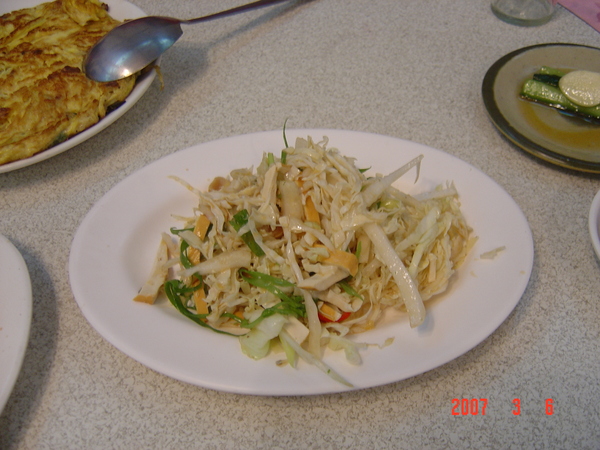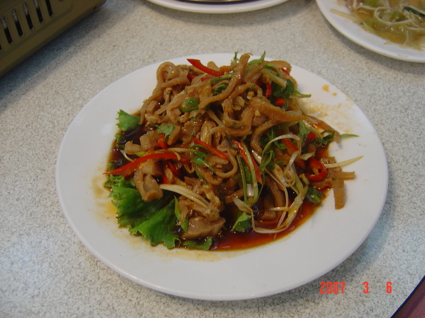 第一道是雞絲拉皮,這道菜是涼拌口味,強調在芥末與綠豆粉皮間的協調感,但因為北極熊號稱是一隻能生吃芥未的熊,完全不怕嗆,所以感覺還好,但不太敢吃芥末的人則是可以嚐嚐