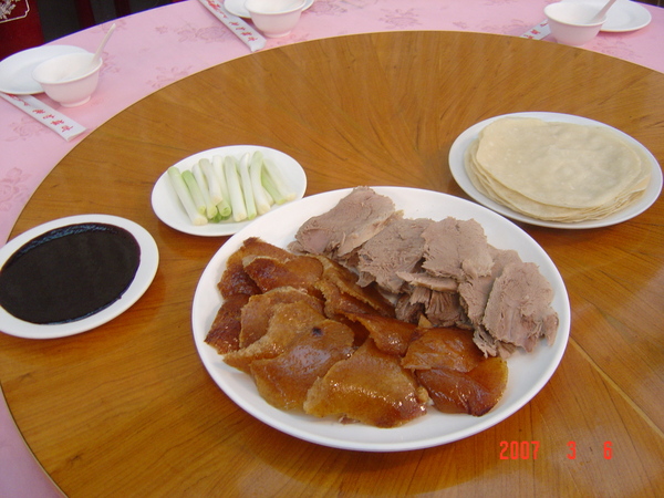 過沒一會,片好的鴨肉及鴨皮就上桌了。口味還不錯,但可能是天氣太冷,所以鴨肉吃起來有點太乾,少了點肥嫩感……這是第一吃