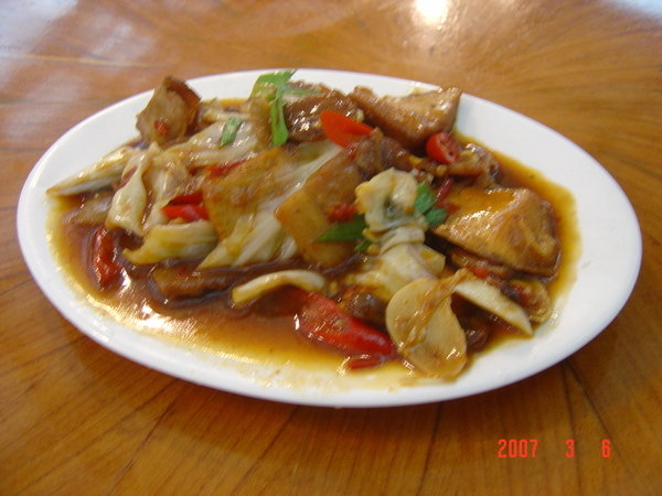 第二吃是高麗菜炒鴨肉,這道菜火候控制的很好,高麗菜鮮甜,口感清脆,配上鴨肉的點綴,就像紅花綠葉般,十分好吃