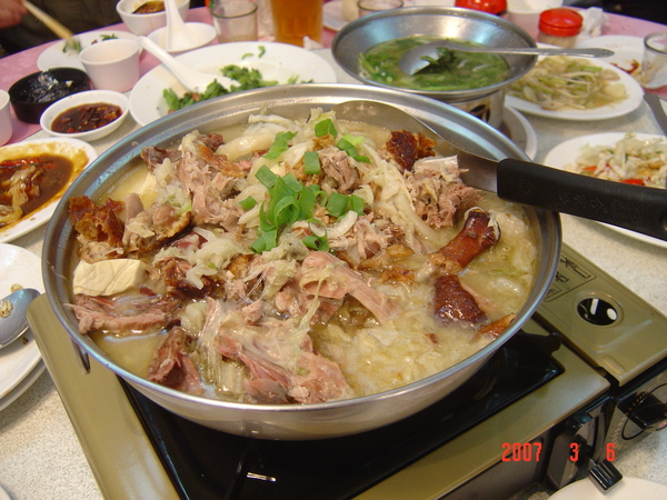 第三吃則是鴨肉酸菜鍋,這是酸菜白肉鍋的改良版,以鴨肉取代豬肉,是很不錯的創意,湯頭十分好喝,但美中不足的就是酸菜不夠酸,所以湯就略顯油膩
