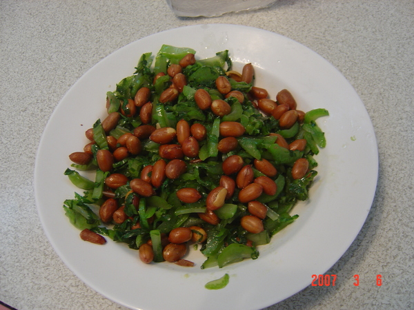 花生“衝”菜,這道菜應該是要吃起來有芥末的嗆味,但可能怕有些人不太敢吃,所以將其調味的沒那麼嗆,是一道改良的菜餚