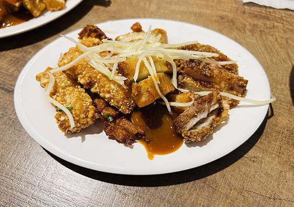 老饕炸三寶(紅燒肉、黃金魚塊、天婦羅),100元